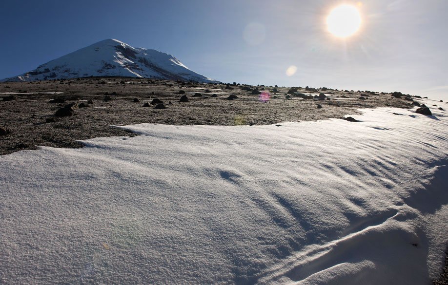 Baltazar Uscha nos contó sobre el último hielero del Chimborazo: “Antes, hasta abajo sabía llegar la nieve más fuerte. El trabajo era más fácil. Ahora, como el tiempo ha cambiado, ya casi no hay nieve ya”. Baltazar sacó hielo de las alturas del Chimborazo desde los 15 años, y lo vendía en la ciudad de Riobamba.