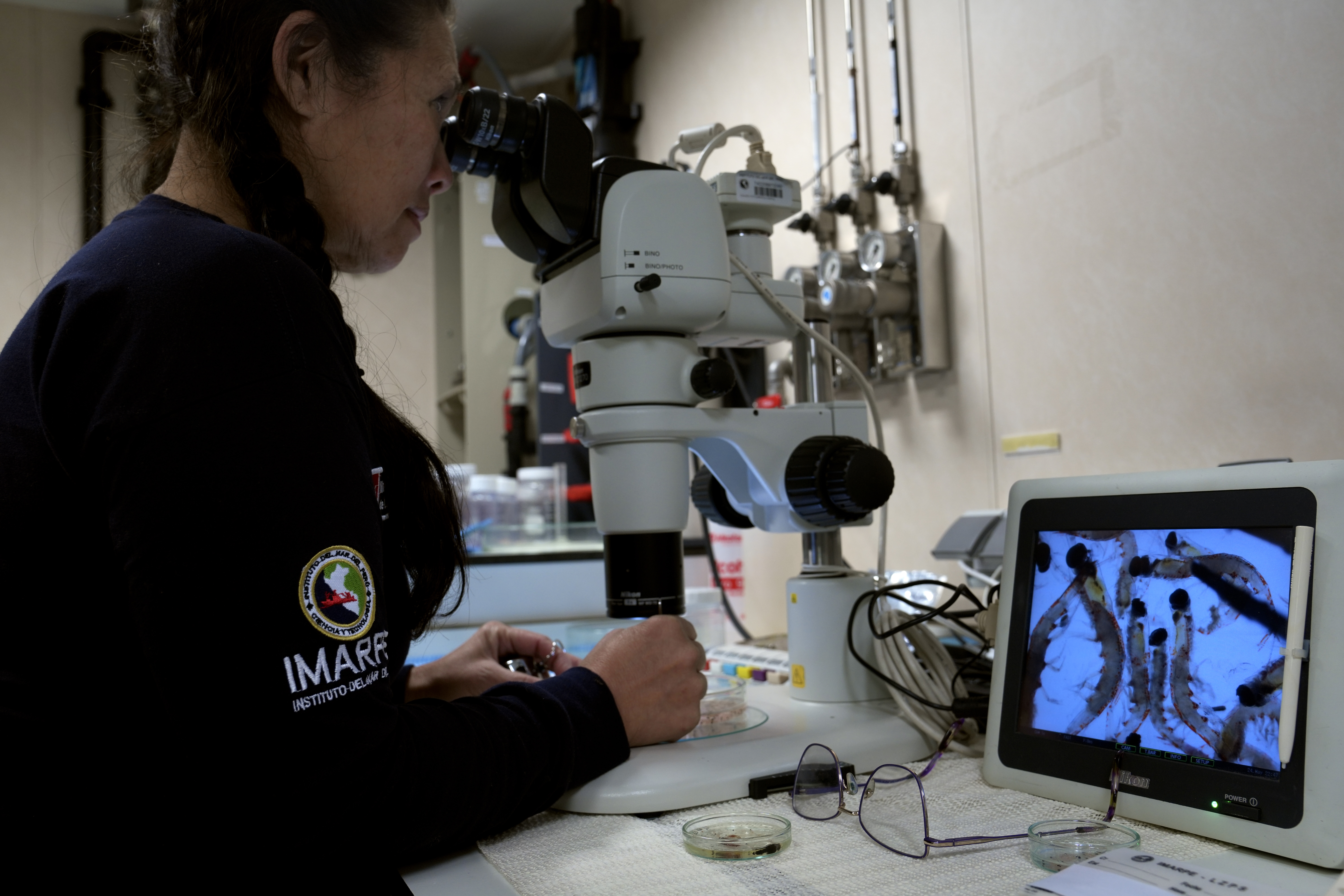 «Esta es la especie que estudia el Perú en la península Antártida y es especie clave en el ecosistema antártico. Los científicos sacan distintas muestras, a través de unas redes, luego los contabilizan, los pesan y verifican el estado en que se encuentran. Es como el símil de la anchoveta para el Perú», nos comenta Denisse.