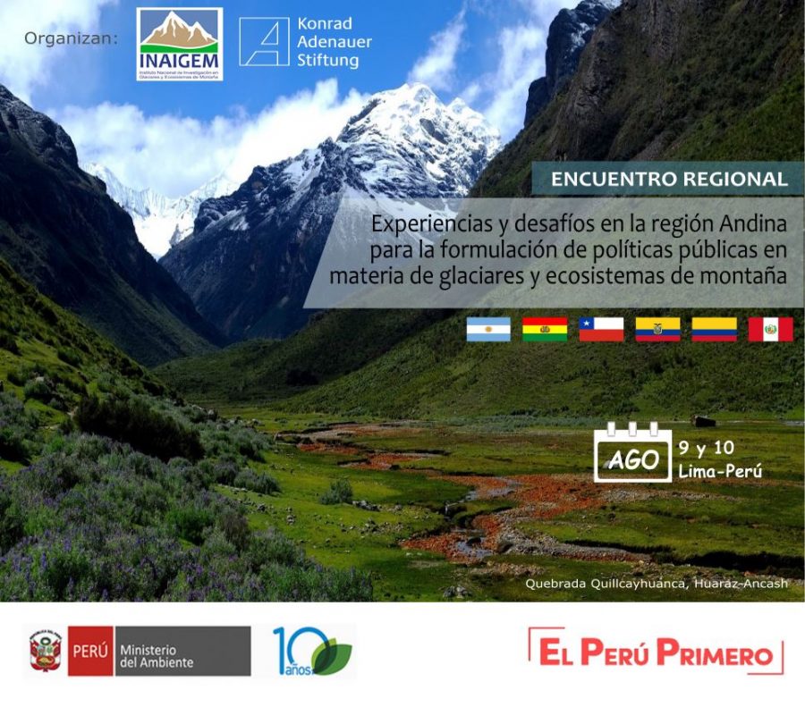 Ante la necesidad de recuperar estos ecosistemas, se desarrollará en Lima el Encuentro Regional “Experiencias y desafíos en la región Andina para la formulación de políticas públicas en materia de glaciares y ecosistemas de montaña” los días 9 y 10 de agosto, organizado por el Instituto Nacional de Investigación en Glaciares y Ecosistemas de Montaña (Inaigem).