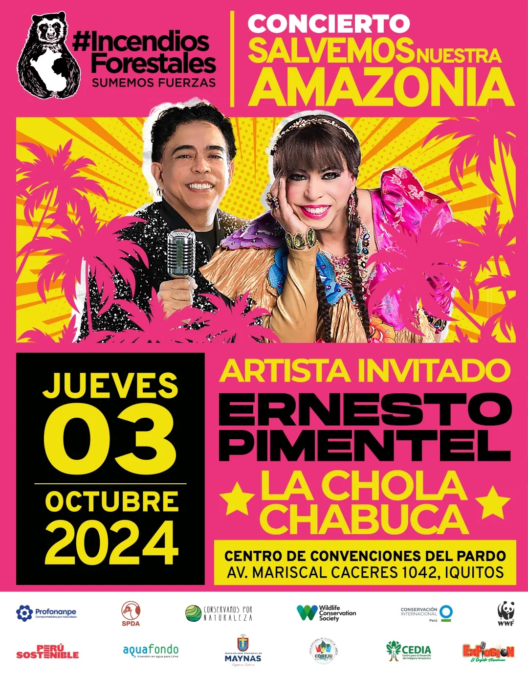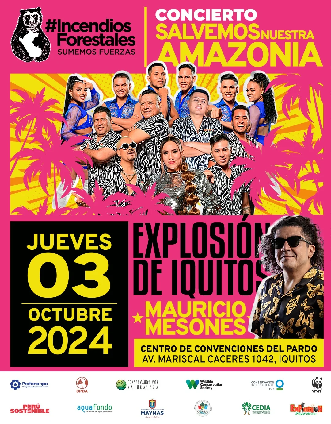En respuesta a esta situación, agrupaciones y artistas como Explosión de Iquitos, Ernesto Pimentel y Mauricio Mesones, junto con la Municipalidad Provincial de Maynas, organizaciones de la sociedad civil y activistas ambientalistas, han organizado el concierto benéfico “Salvemos nuestra Amazonía”. El evento tiene como objetivo recaudar fondos para la campaña nacional #IncendiosForestales: Sumemos fuerzas, una iniciativa que busca mitigar el impacto de los incendios forestales, brindando apoyo a quienes combaten los incendios y trabajan en la remediación de los daños causados.
