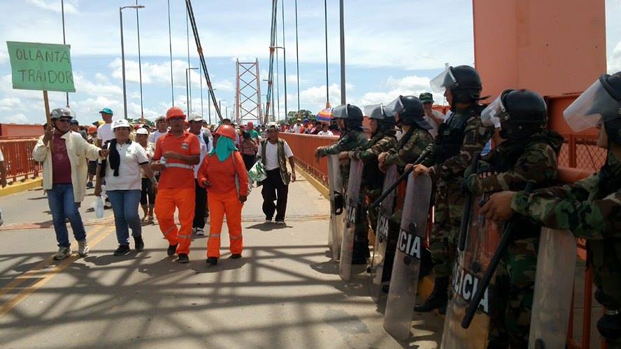 A estas horas (12:30) los manifestantes bloquearon el puente Continental (ex Billinghurst). Hasta el momento no se han registrado actos de violencia. Unos 600 policías de Cusco y Lima han llegado a la zona.
