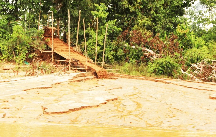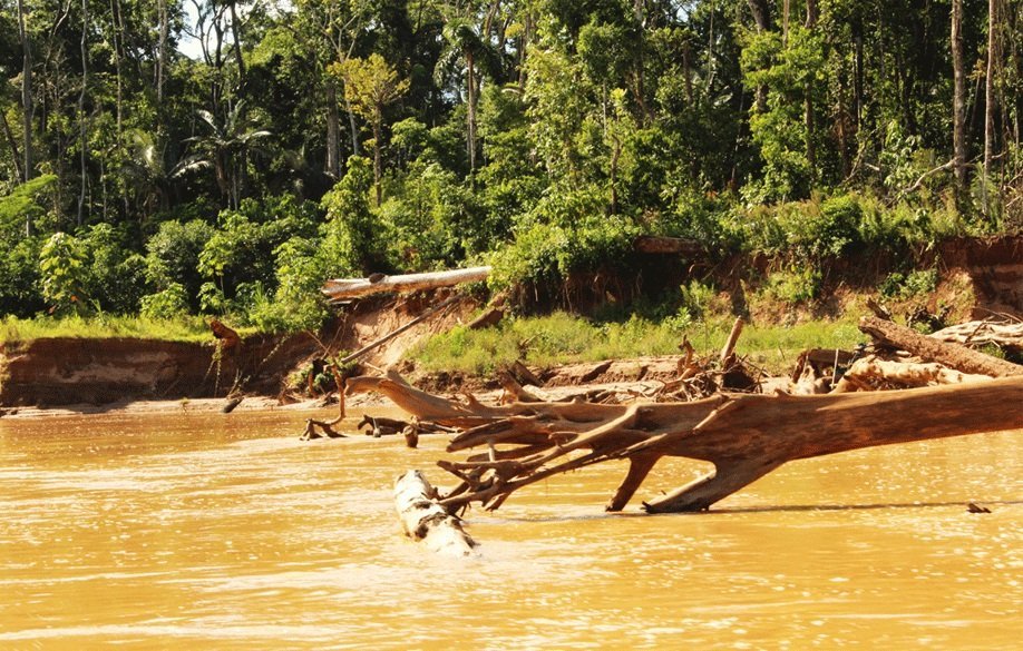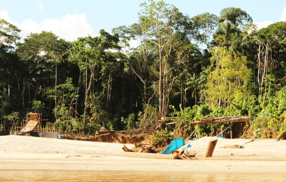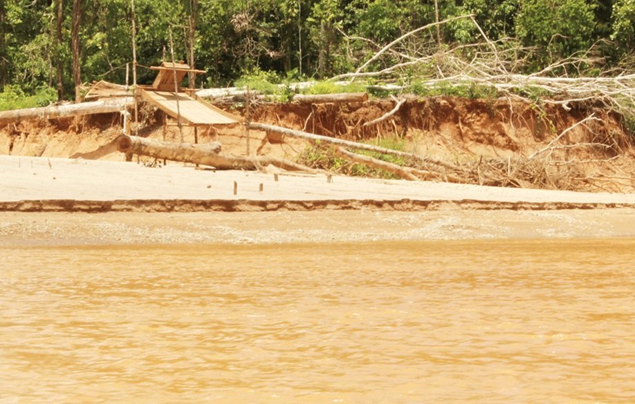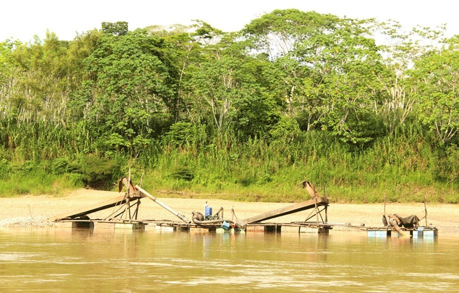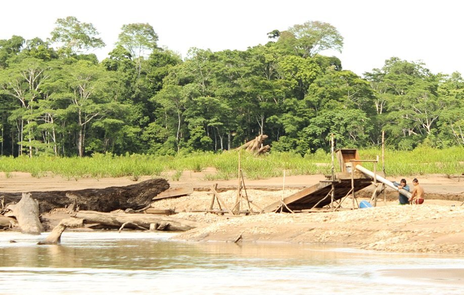 A lo largo del río Tambopata se puede ver a mineros ilegales realizando trabajos en el borde del río, una actividad prohibida.