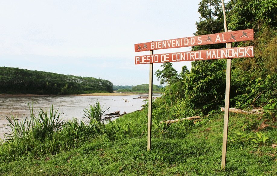 El puesto de control Malinowski se encuentra en la confluencia de los ríos Tambopata y Malinowski, y es uno de los diez puestos de control de toda la reserva.