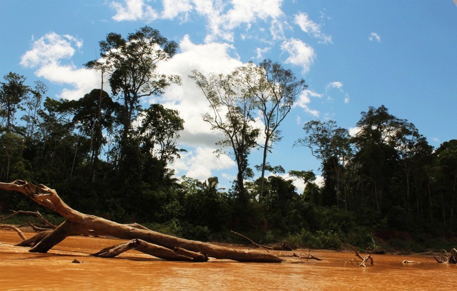 Llegar del puesto de control Malinowski a Correntada, el más próximo, toma aproximadamente 6 horas de recorrido por río. En el trayecto se puede encontrar imágenes como esta.