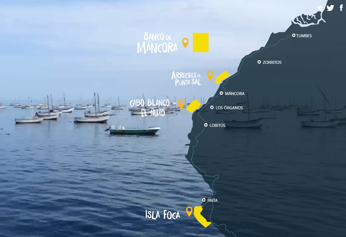 - Área protegida de 115 675.89 hectáreas abarca los sectores: Isla Foca, Cabo Blanco – El Ñuro, Arrecifes de Punta Sal y Banco Máncora, ubicados frente a las costas de Piura y Tumbes.