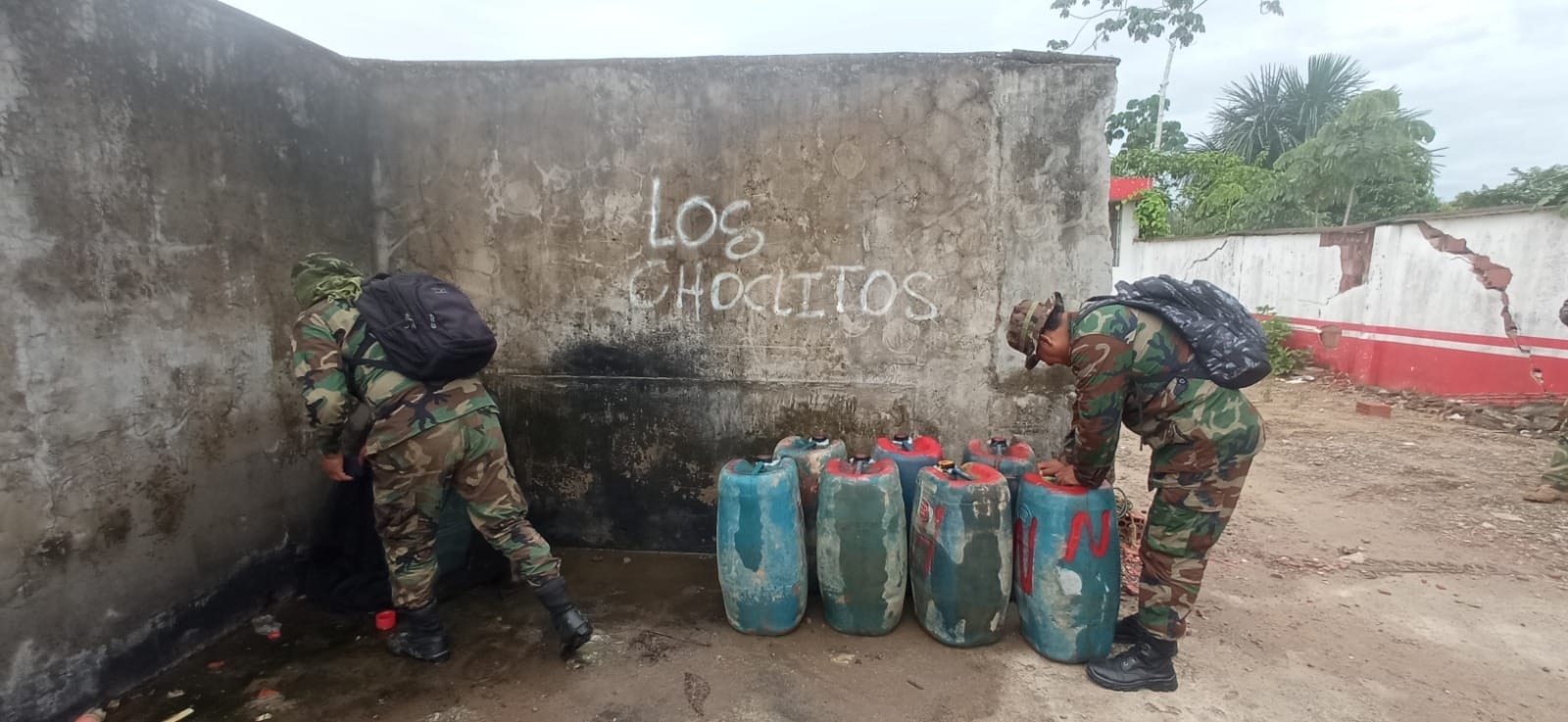 Al ver esta escena, de inmediato, los policías de la Base Mixta del kilómetro 108 de la referida carretera inspeccionaron la estación de servicio. Tras la verificación del lugar, encontraron otros nueve bidones de 18 galones completamente abastecidos y listos para ser cargados a unos vehículos que fueron retirados del lugar por otros sujetos que notaron la presencia policial.