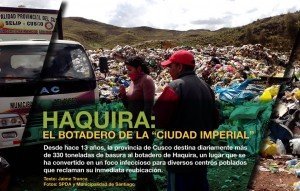 - Haquira, a solo 9 kilómetros de la ciudad de Cusco, funciona desde el 2001. Los restos de todos los distritos son arrojados en este lugar, por lo que ha generado el reclamo constante de personas que viven en poblados aledaños.