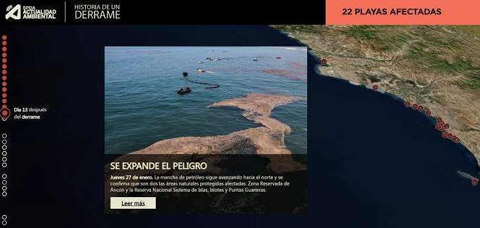A fin de conocer todos los detalles sobre lo sucedido en estas semanas, Actualidad Ambiental lanzó “Historia de un derrame”, un completo especial multimedia que reúne los momentos claves del desastre ambiental más grande en la historia del mar peruano y al que puedes acceder en ESTE ENLACE.