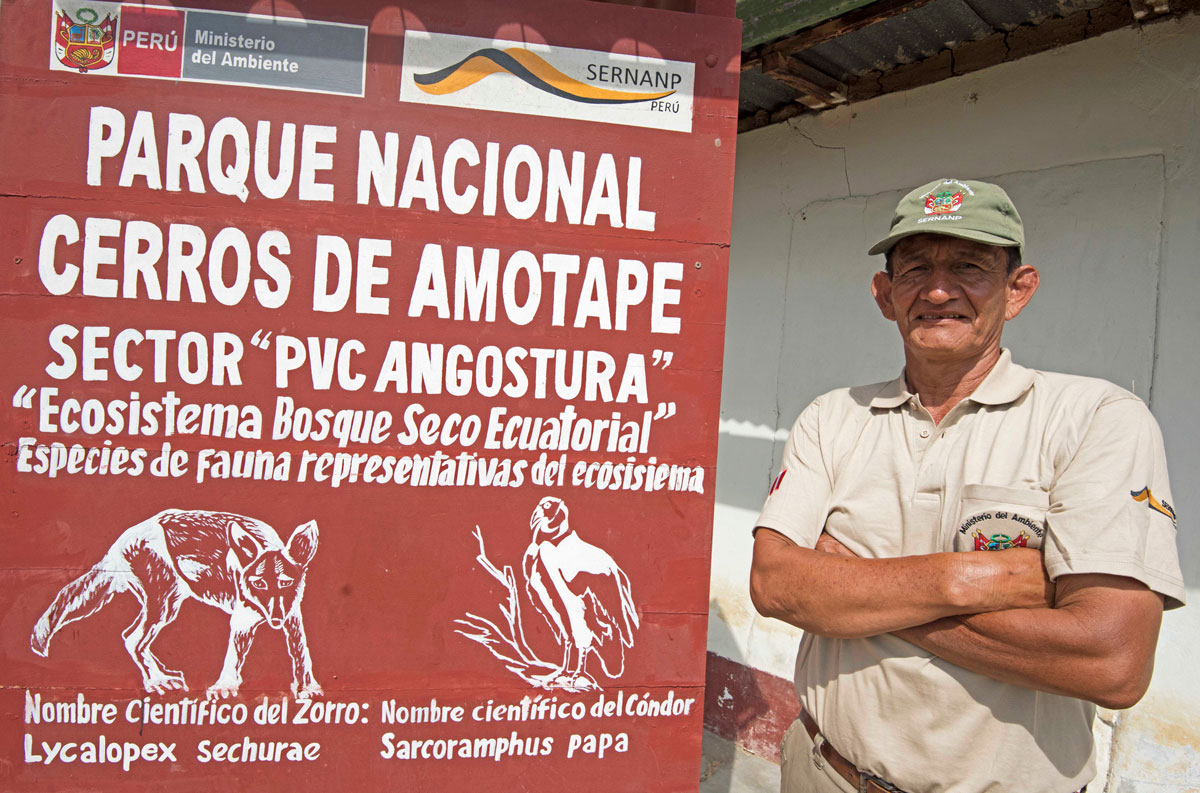 Don Enrique, padre de cinco hijos -de los cuales uno de ellos también es guardaparque en esta misma área protegida-, en sus largos años como guardián voluntario y oficial de estos bosques ha cumplido funciones en el Santuario Nacional Los Manglares de Tumbes, el Coto de Caza El Angolo y la Reserva Nacional Tumbes, las tres áreas protegidas de carácter nacional que, junto a Cerros de Amotape, conforman el núcleo del mosaico de protección de la región Tumbes, una porción de nuestro territorio cuyos cauces fluviales, nacidos al otro lado de los Andes, fracturaron la cordillera hace miles de años para entregar sus aguas al océano Pacífico, formando a su paso ecosistemas ricos en endemismos de aves y otros seres vivos.