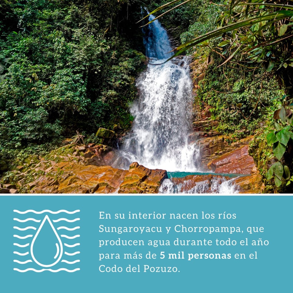 La propuesta de Área de Conservación Regional (ACR) Codo del Pozuzo en Huánuco protegerá bosques de montaña, que son fuente de agua limpia y segura para 5 mil personas ya que de su interior nacen dos importantes ríos de la zona: el Sungaroyacu y el Chorropampa, que brindan agua limpia todo el año a la población del Codo del Pozuzo, ubicada a 7 km del área y a sus alrededores, recurso que es usado para consumo humano, agricultura, ganadería y otras actividades económicas.