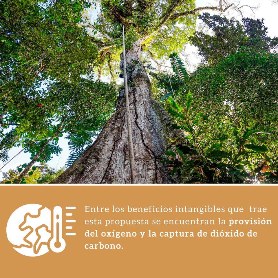 Entre los beneficios intangibles se encuentran la provisión del oxígeno, mitigación al cambio climático (captura de dióxido de carbono), mitigación de los desastres naturales, además de preservación de los valores culturales y espirituales asociados a estos espacios naturales.