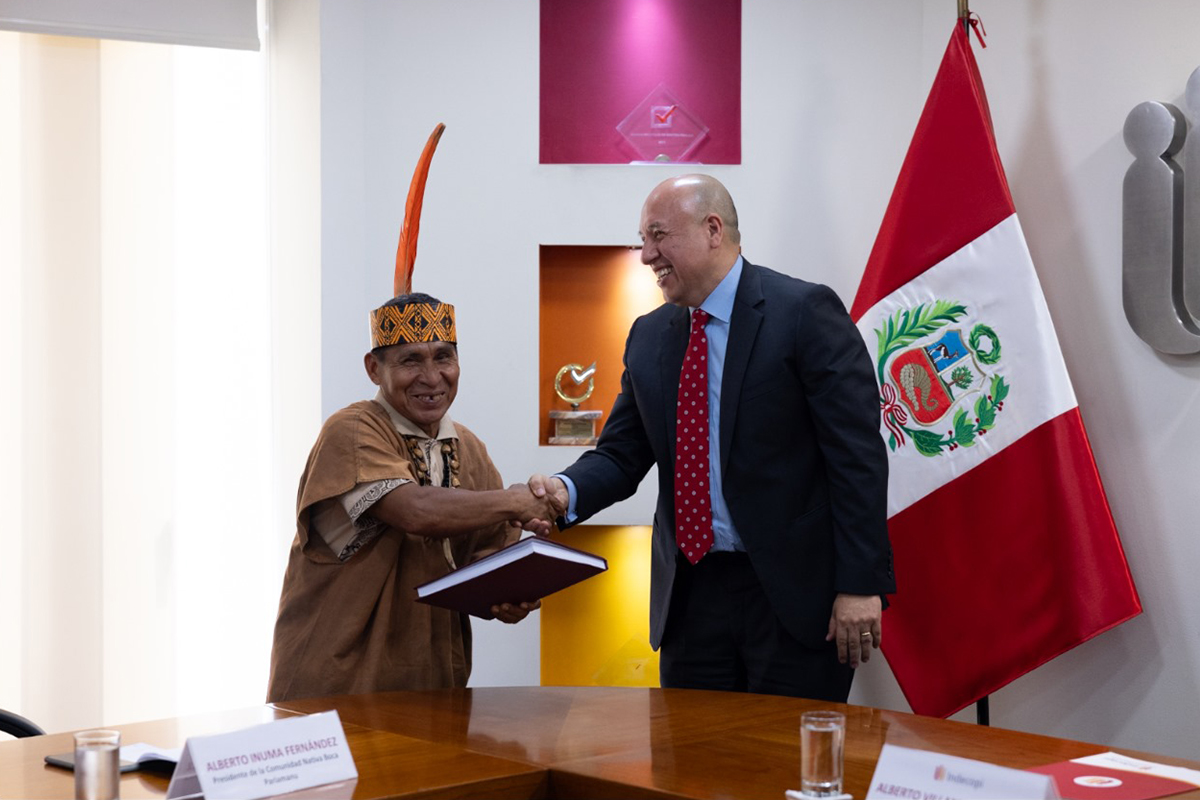 Durante una ceremonia, en la sede del Indecopi en Lima, Alberto Inuma, presidente de Boca Pariamanu, recibió los documentos oficiales que otorgan una protección efectiva a los conocimientos tradicionales heredados de generación en generación, de manera oral, por el pueblo amahuaca.