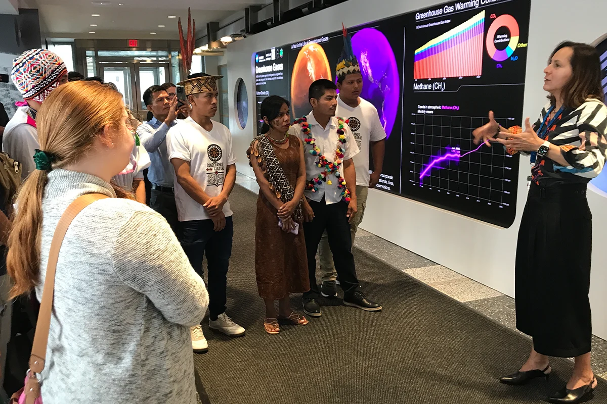 Los jóvenes indígenas llegaron a las oficinas de la NASA, en el estado de Washington. Durante su estadía se reunieron con “funcionarios que trabajan con los pueblos indígenas no solo de América Latina, sino de diferentes partes del mundo”, explicó Marta Torres, coordinadora del Programa de Educación e Impacto Político del Centro de Innovación Científica Amazónica (Cincia), organización responsable de la iniciativa ‘Conectando Culturas’.