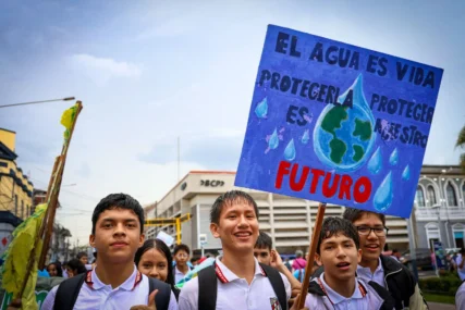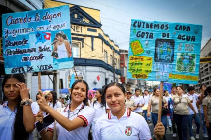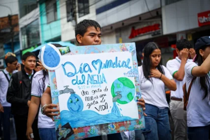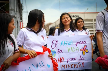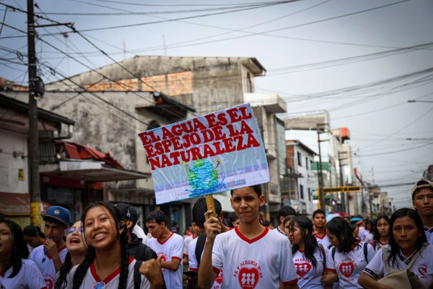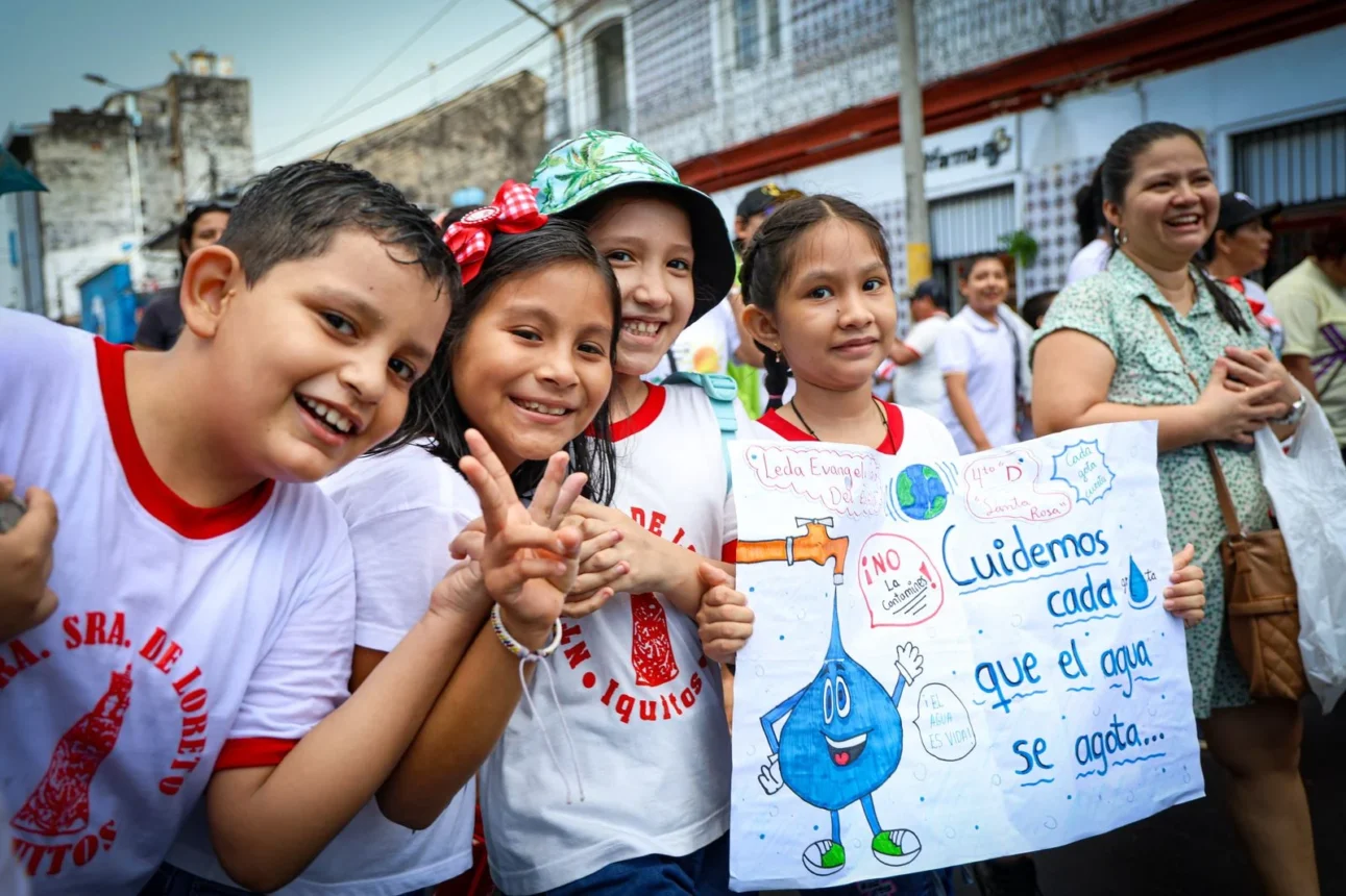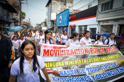 Bajo un cielo lluvioso, con carteles y arengas sobre la importancia de cuidar el agua, un grupo de más de dos mil personas entre adultos, jóvenes y principalmente escolares, recorrieron las principales calles de Iquitos para expresar su preocupación frente al avance de la minería ilegal en la cuenca del Nanay, río del cual dependen para abastecerse de agua y de pescado, un alimento clave en la dieta amazónica.