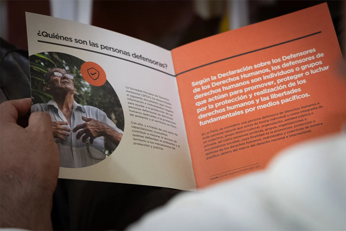 Posteriormente, Luisa Ríos y Franshesca Gamarra, de la SPDA, explicaron a los comunicadores indígenas la situación de defensores ambientales y el mecanismo intersectorial para la protección de personas defensoras de derechos humanos en el Perú.