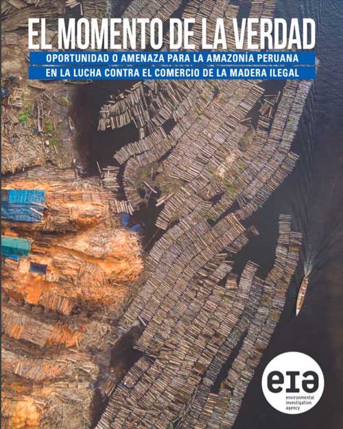 El Momento de la Verdad: Oportunidad o Amenaza para la Amazonía Peruana en la Lucha contra el Comercio de la Madera Ilegal, es el nombre del informe de EIA, organización que desde años atrás ha denunciado diversos casos que atentan contra los bosques de la Amazonía. En el 2021, por ejemplo, EIA publicó La máquina lavadora, cómo el fraude y la corrupción en el Sistema de concesiones están destruyendo el futuro de los Bosques del Perú.