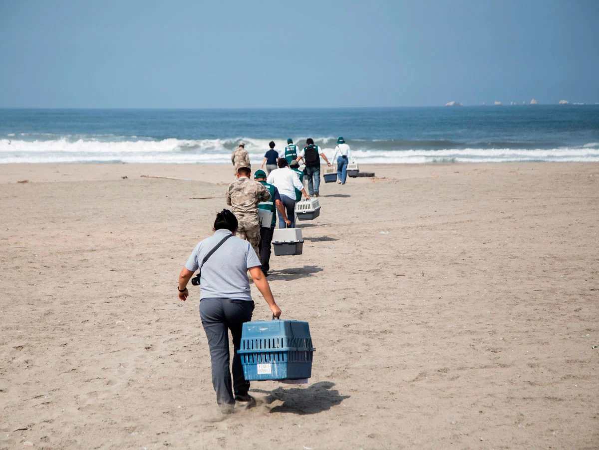 - La liberación de las aves también contó con el apoyo de la Marina de Guerra del Perú.