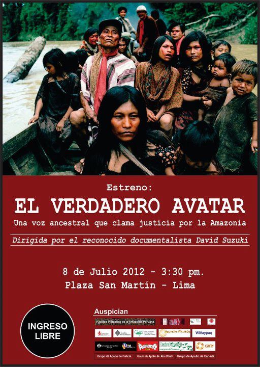 Este domingo 8 de julio, el Instituto del Bien Común (IBC), proyectará al aire libre “El avatar real”, una obra del reconocido realizador David Suzuki. El documental narra la problemática indígena de los pueblos Awajun, Wampis y Harakmbut en la Cordillera del Cóndor debido a la explotación minera y de hidrocarburos.