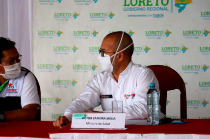 - El ministro de Salud llegó a Iquitos con 80 balones de oxígeno, 33 mil mascarillas comunitarias, 7 mil pruebas rápidas y equipos de protección del personal de salud de la región.