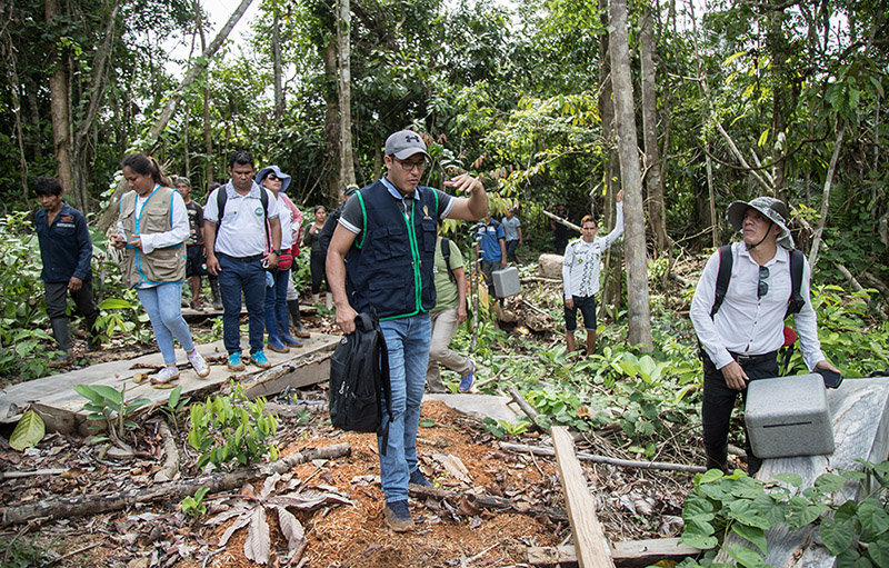 La última semana de febrero de este año, la Fiscalía Especializada en Materia Ambiental de Maynas realizó una inspección en la zona afectada. Acompañaron a los especialistas agentes policiales y representantes de la Gerencia Regional de Desarrollo Forestal y de Fauna Silvestre (Gerfor) del Gobierno Regional de Loreto. Actualidad Ambiental acompañó el recorrido de la Fiscalía Ambiental y pudo constatar la tala ilegal realizada, las hectáreas deforestadas de bosque, la construcción de trochas y cómo se ha ido convirtiendo grandes extensiones de bosque en chacras.
