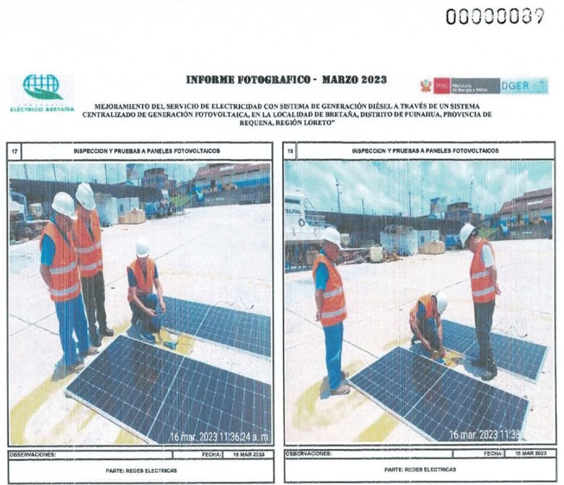 Parte del informe fotográfico de avance del proyecto “Mejoramiento del servicio de electricidad con sistema de generación diésel a través de un sistema centralizado de generación fotovoltaica”. Marzo de 2023. Fuente: Infobras