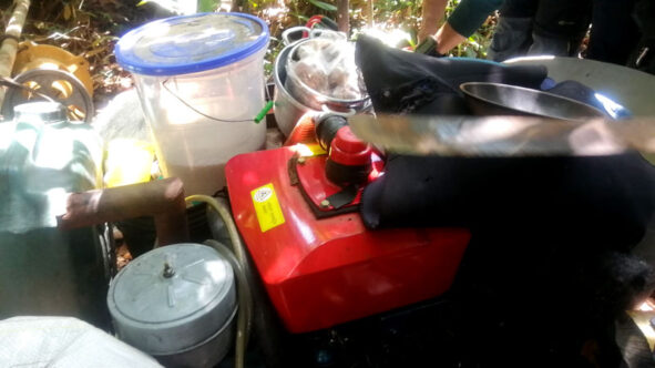 El pasado 25 de febrero, un equipo de la Fuerza de Operaciones Especiales (Foes) de la Marina de Guerra del Perú, Capitanía de puertos y la Fema de Iquitos, llegó a la comunidad nativa de Alvarenga, el punto más lejano dentro de la ruta del operativo. En dicho lugar hallaron dispositivos empleados para acondicionar las dragas, entre estos un motor, alfombras y equipos de comunicación como una radio y un celular. Como se sabe, los motores y la alfombra sirven para para acondicionar las dragas que succionan la arena del fondo del río y su rivera.