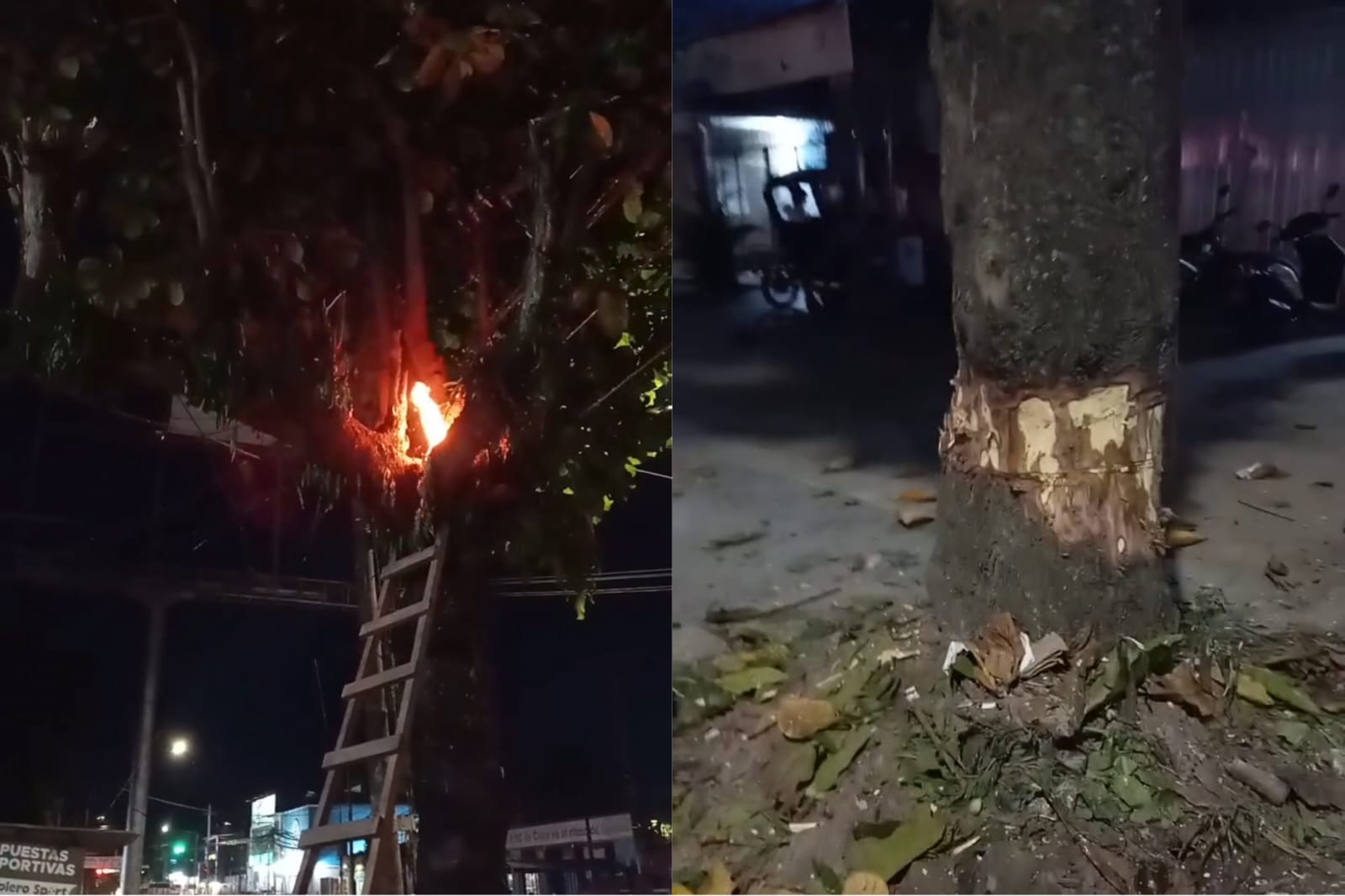 - En el video subido en redes sociales se observa cómo se le prende fuego al árbol cuando las golondrinas permanecían en él.