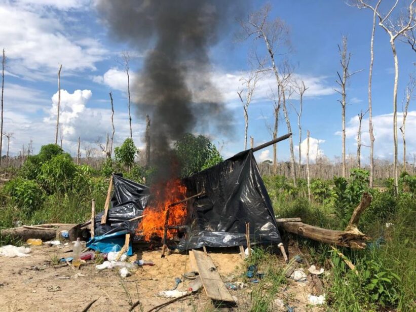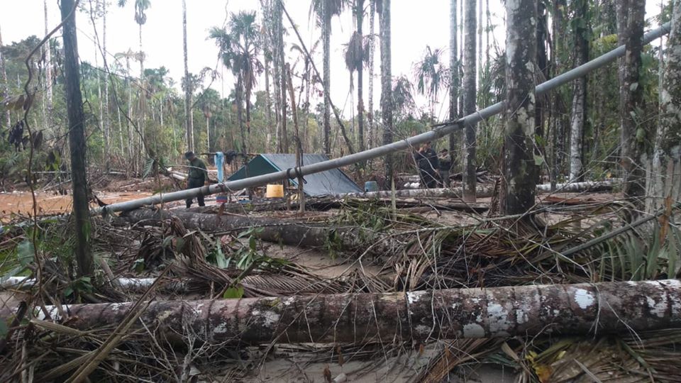 «Se logró encontrar dos balsas tracas, dos bidones plásticos conteniendo petróleo, dos tracas manuales, 2 tolvas, 20 metros de alfombra, 60 metros de tubo PVC de 6 pulgadas, un campamento rústico, entre otras maquinarias, equipos e insumos que serían utilizados para el desarrollo de esta actividad ilegal», difundió la FEMA.