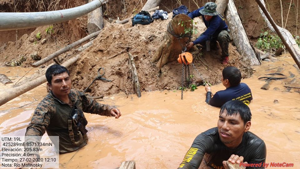 El pasado jueves 27 de febrero la Fema junto a la Marina de Guerra realizaron un operativo contra la minería ilegal en el río Malinowski, ubicada en la zona de amortiguamiento de la Reserva Nacional Tambopata. «Tras el operativo, se interdictó 3 motores, 2 balsas, 2 bombas de succión, 1 traca, tubos PVC y 12 galones de petróleo», difundió la Fema.