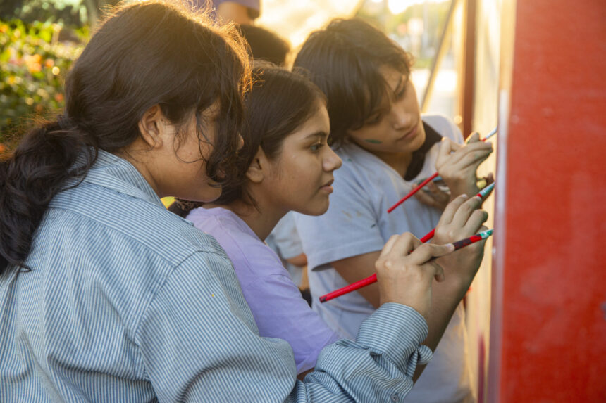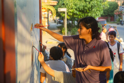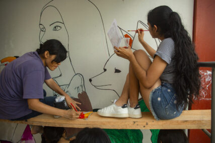 K’erenda colaboró pintando el mural del colegio Alipio Ponce. Foto: Pavel Martiarena / Generación Verde