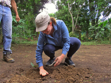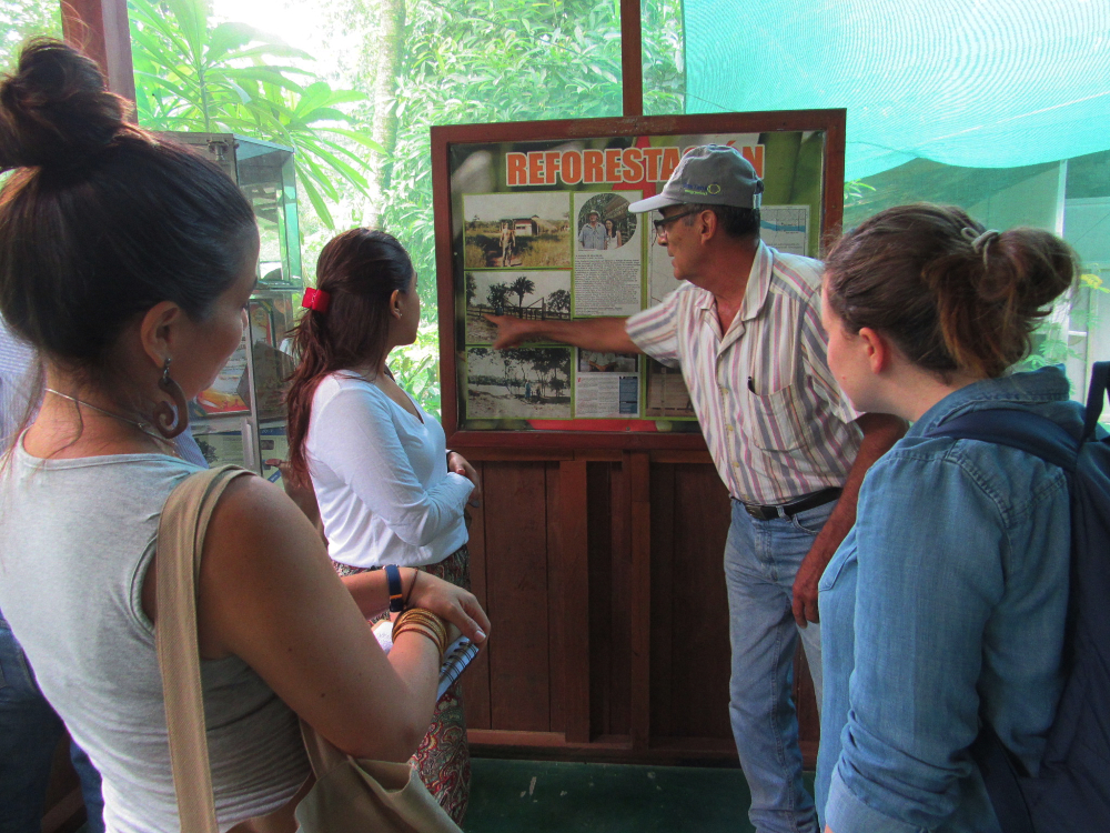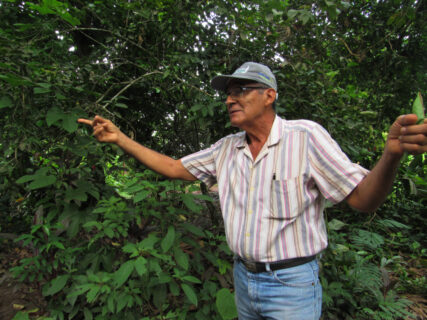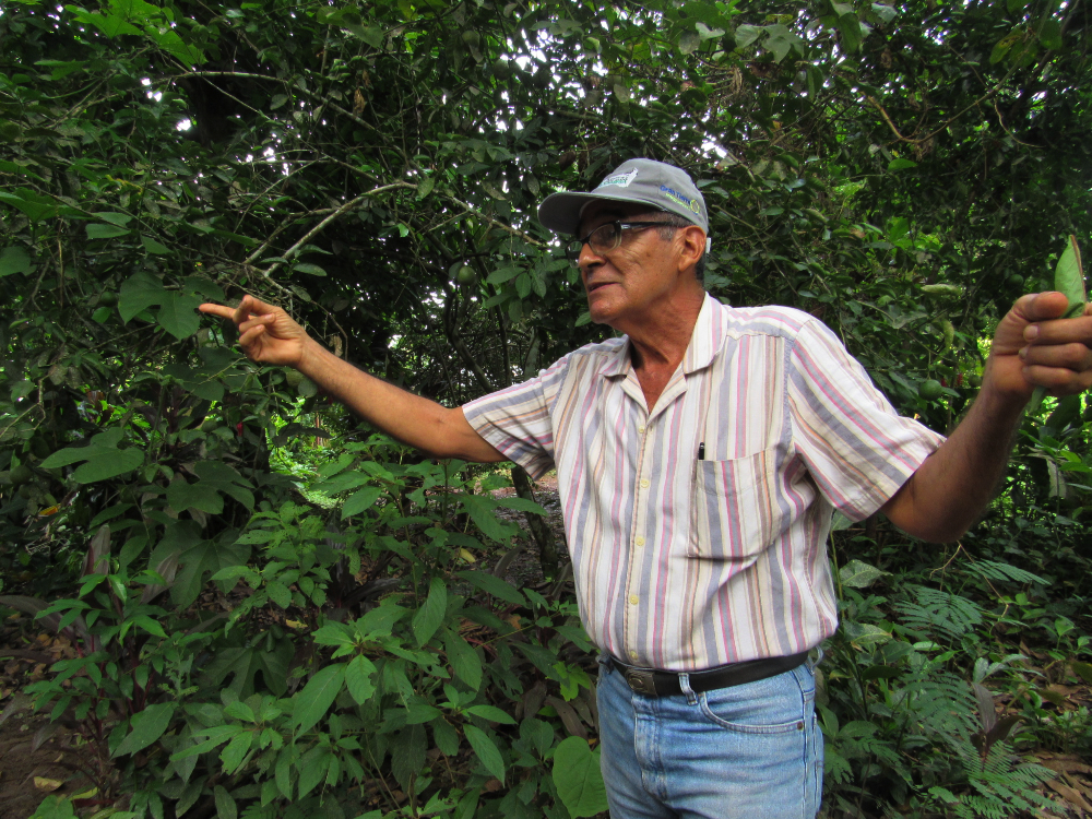 Zambrano narró la labor de reforestación que ha venido realizando en los últimos 34 años, esfuerzo que se ve reflejado en las 35 hectáreas que transformó de suelo degradado a un fundo con un promedio de 120 mil árboles de 120 especies, algunos con una altura de casi 20 metros de altura, de las cuales el 60% son frutales y el resto medicinales.