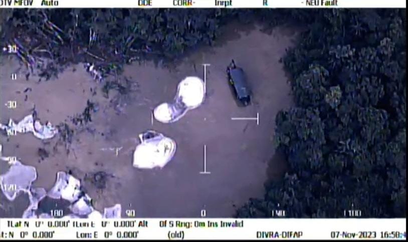 En las imágenes registradas por la Fuerza Área del Perú (FAP), en conjunto con la Fiscalía Especializada en Materia Ambiental (Fema) de Maynas, la Marina de Guerra del Perú y la Polícia de Crimen Organizado, se pueden observar pequeñas montañas de arena, árboles caídos y aguas visiblemente contaminadas, junto a las pequedragas que estarían operando en estas zonas.
