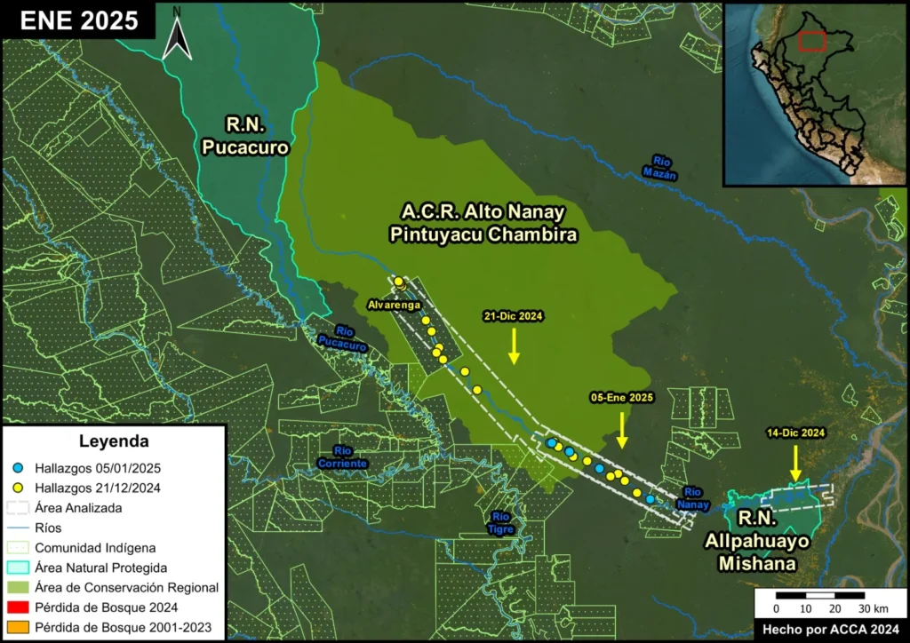 En el último informe de la plataforma RAMI (Monitoreo de Minería Satelital con Imágenes de Radar), publicada en enero de 2025, se advierte sobre las alertas de minería ilegal registradas en 2024.