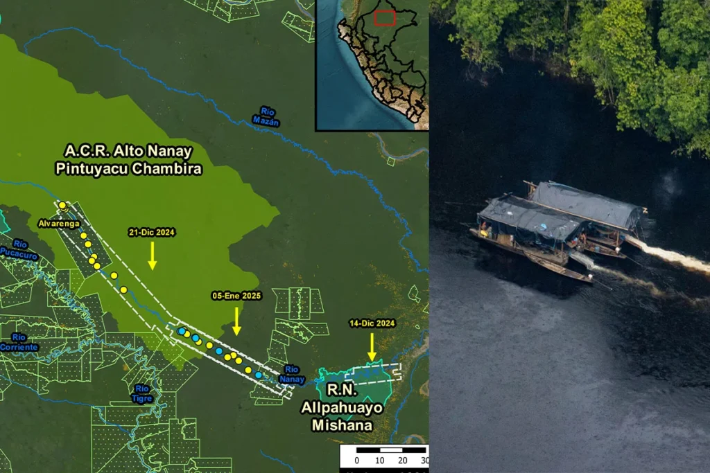 El análisis de las imágenes satelitales detectó, solo en el mes de diciembre, 41 nuevas dragas mineras en la zona norte de la Amazonía peruana, en el río Nanay, río que abastece de agua potable a más de 500 mil personas.