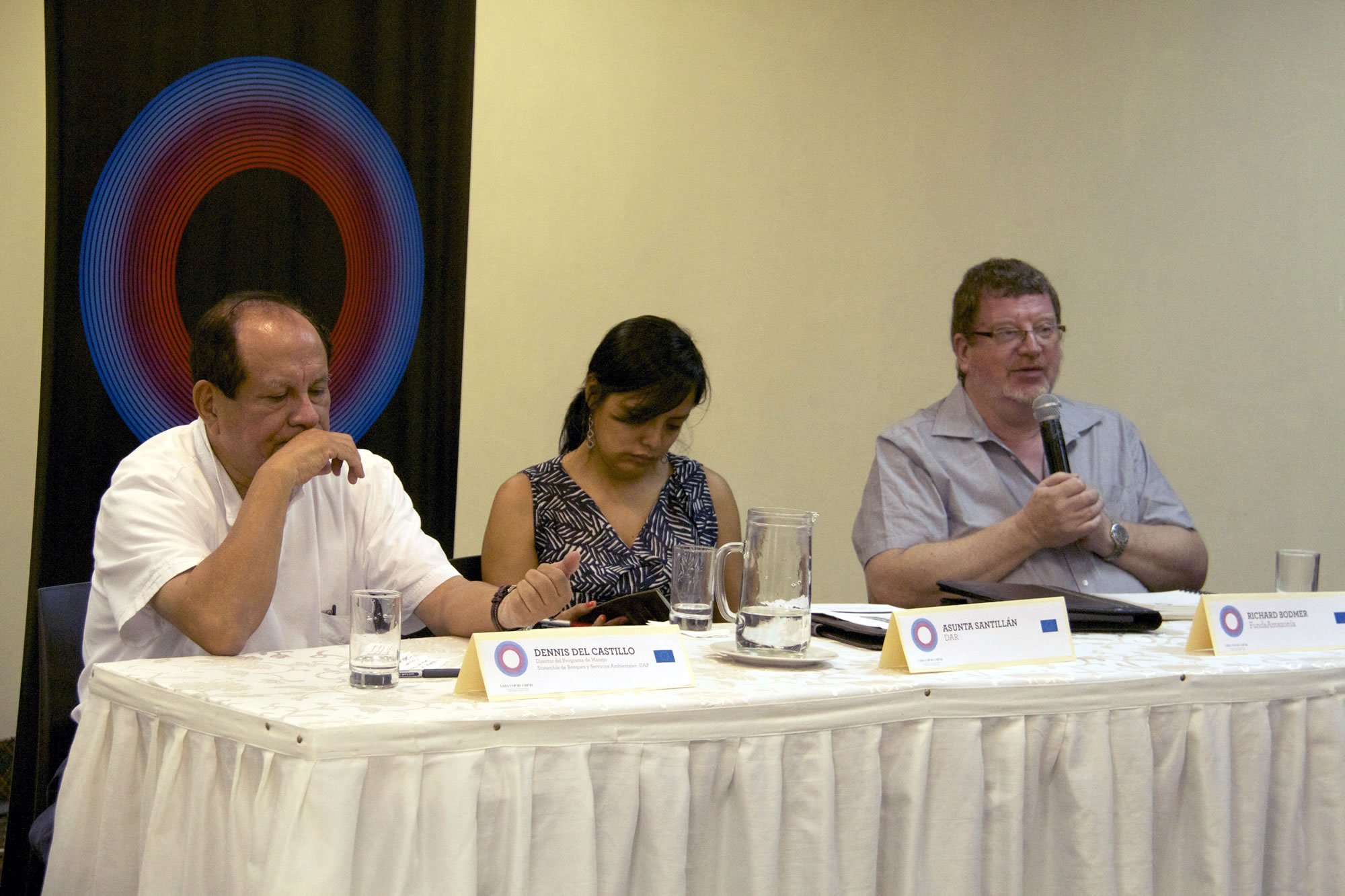 El evento contó con las presentaciones de Javier Noriega, Jefe de la Reserva Nacional Pacaya Samiria – SERNANP; Asunta Santillán, de DAR; Dennis del Castillo, Director del Programa de Manejo Sostenible de Bosques y Servicios Ambientales –IIAP y Richard Bodmer, investigador de FundAmazonía.