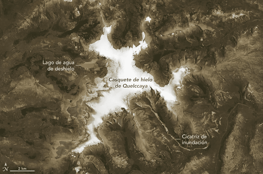 La NASA también informó que a partir del deshielo del Quelccaya, se formaron lagunas, particularmente a lo largo del lado occidental del casquete de hielo, y “muchas de estas cuencas lacustres, talladas por el hielo en movimiento, han perdido contacto con el hielo que las formó”.