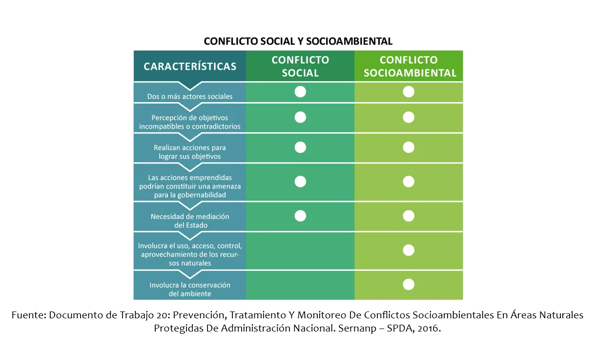 Los conflictos socioambientales, específicamente, son descritos por el Ministerio del Ambiente (Minam) como “la disputa de intereses contrapuestos o aparentemente excluyentes entre dos o más actores acerca del uso, acceso, control, aprovechamiento o conservación de los recursos naturales. El conflicto socioambiental se inicia cuando los (potencialmente) afectados despliegan acciones con el objetivo de evitar un daño ambiental o lograr su recuperación”[1].