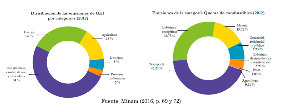 La categoría de Energía, que presenta poco más de un cuarto de las emisiones de GEI, ha tenido una participación constante y creciente, asociada a la mayor demanda en las diferentes actividades económicas del país; principalmente por la quema de combustibles, donde destacan las fuentes móviles (sector transporte con 43.24%) y fuentes fijas (generación de energía con 28.78%) (Trinidad y Ortiz, 2019, p. 275). De estas, más del 80% se refieren a emisiones de CO2.