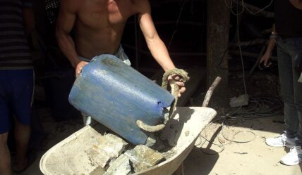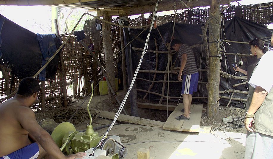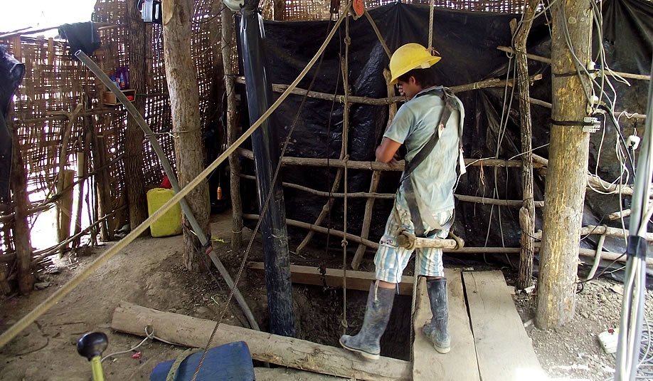 - El proceso de explotación se realiza a través de zanjas que se abren en el suelo. En ellas, descienden los mineros para una extracción manual de los minerales. Estas zanjas pueden tener entre 80 a 120 metros de profundidad. El minero sobrevive a través de un tubo donde recibe aire generado por una máquina. Los únicos implementos de seguridad que utiliza son un casco y un arnés simple.