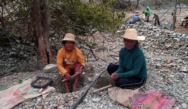 - Cerca a las zanjas de extracción, se encuentran los “payaqueros”, personas que buscan pedazos de piedras con mineral entre las rocas que desechan los mineros, con el fin de venderlos y obtener algo de dinero. Normalmente son mujeres y ancianos que se ven obligados a realizar esta actividad para sobrevivir. El nuevo marco jurídico de formalización no toma en consideración esta clase de actividad.