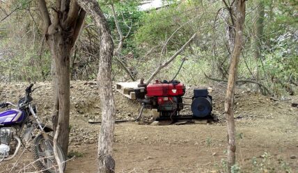 - La maquinaria utilizada es su mayoría mecánica: motores para subir y bajar mineros y mineral de las zanjas, generadores de electricidad, picos, palas y carretillas. Algunas de las máquinas más caras, como los generadores, son alquilados a precios muy altos. Pero algunas fueron donadas por acopiadores de la zona, debido a que ellos obtienen beneficios directos de la extracción.