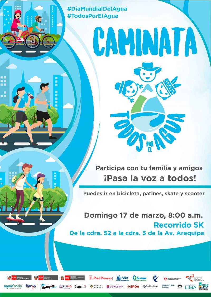 Este domingo 17 de marzo, desde las 9:00 de la mañana se realizará la “Caminata por el agua”, actividad promovida por la Autoridad Nacional del Agua (ANA) enmarcada en la “Semana por el Agua”.