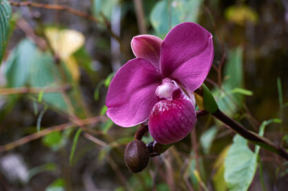 Respecto a flora, en el BPAM habita una alta diversidad de epífitas, orquídeas, helechos y bromelias como la piñuela (Aechmea angustifolia).