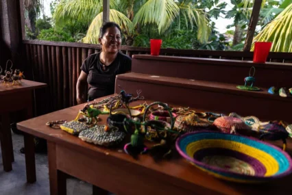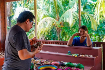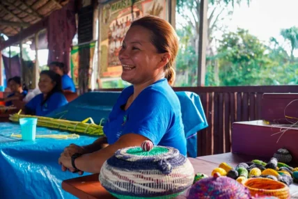 Luego del almuerzo, los periodistas se trasladaron a la comunidad El Chino, en donde visitaron el local de las artesanas de la Asociación “Manos Amazónicas”. Las artesanas les mostraron el proceso de elaboración de sus artesanías y compartieron sus experiencias sobre el trabajo que realizan.
