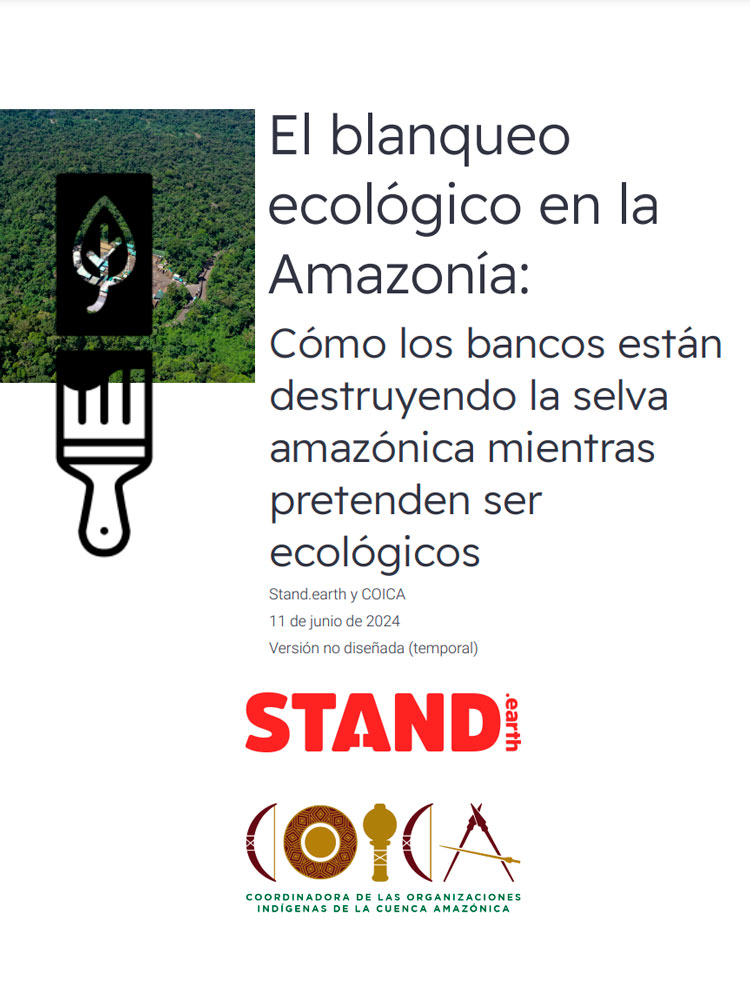 El informe El blanqueo ecológico en la Amazonía revela que un promedio del 71 % de la Amazonía no está protegida eficazmente por los marcos de gestión de riesgos ambientales y sociales de los cinco principales financistas de petróleo y gas amazónicos: Citibank, JPMorgan Chase, Itaú Unibanco, Santander y Bank of America. Según Coica y Stand.earth, esto significa que dichos bancos dejan vulnerable la mayor parte del territorio amazónico, sin gestión de riesgos para el cambio climático, la biodiversidad, la cobertura forestal y los derechos de los pueblos indígenas.