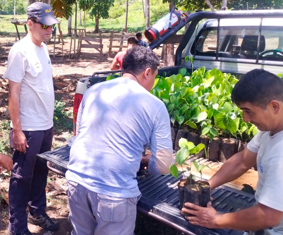 La entrega de los plantones se realizó en los poblados de Porvenir, Santa Rosa, Vista Alegre, Simón Bolívar, Alto Jorge Chávez, Nuevo Jaén, Esperanza de Ojecillo, en el distrito de Shamboyacu, provincia de Picota; Leche, Pucallpa y Pongo Isla en el distrito de Huimbayoc, provincia de San Martín; y, Challual y Flor de Selva, en el distrito del Alto Biavo, provincia de Bellavista, de la región San Martín.