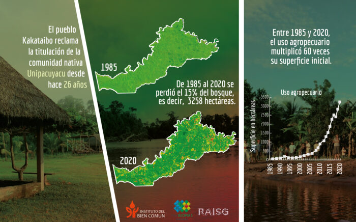 “Se analizó a la comunidad nativa Unipacuyapu, es una comunidad que no tiene un título de propiedad. No solo eso, su situación es compleja. Está sitiada por el tráfico de tierra y varias actividades ilegales como el tráfico de drogas. Es así que, la invasión de tierras redujo su territorio a 17 mil hectáreas”, precisa Hallazi.