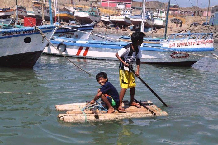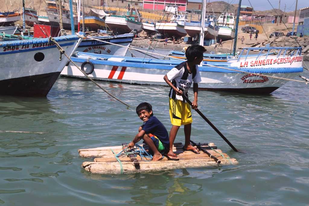 - Los niños de la zona se aventuran al mar con balsillas hechas por ellos mismos. A muchos, esto les sirve de entrenamiento, ya que al crecer se dedicarán a la pesca artesanal.