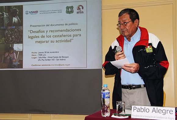En la presentación del documento “Desafíos y recomendaciones legales de los castañeros para mejorar su actividad”, representantes de asociaciones de castañeros de Alerta, Mavila y Alegría, de Madre de Dios, hicieron aportes a la propuesta de reglamento de la nueva Ley Forestal y de Fauna Silvestre (Ley N° 29763).