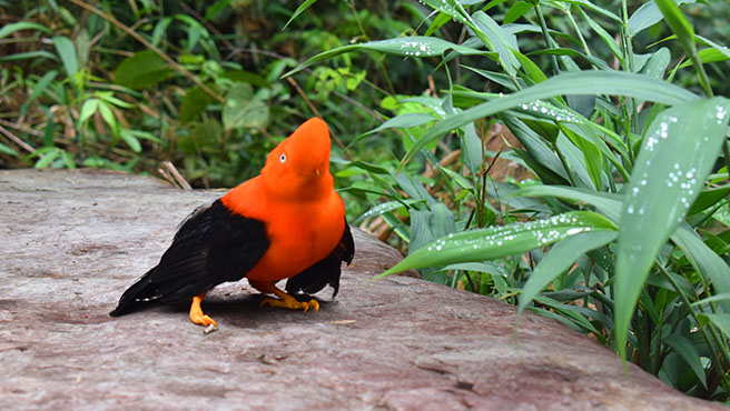 La Rupícola peruviana es una especie de ave paseriforme de la familia Cotingidae que habita en la región amazónica del Perú y que destaca por la increíble belleza de su plumaje de color rojo anaranjado intenso.En 1941, mediante Resolución Suprema 983, el gallito de las rocas fue declarado el ave nacional del Perú.